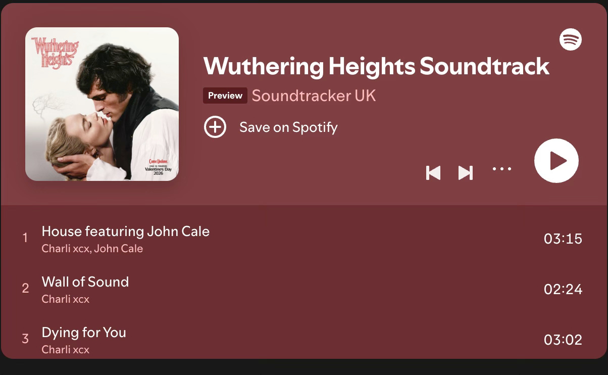 I’m writing this on my own fainting couch, listening to the Charlie XCX Wuthering Heights soundtrack humming, like the movie never actually ended and is still moving under my skin. Less background music, more my new emotional weather. This movie might never end for me. I’ll watch this again and again ! I couldn’t sleep. I’m shocked and rocked.